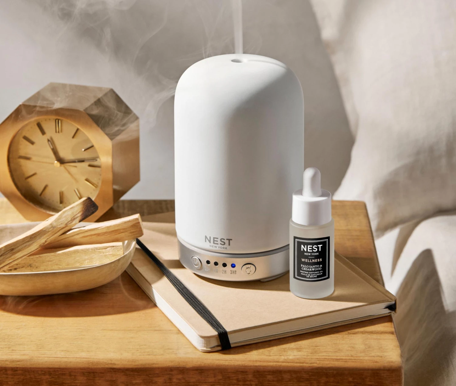 Find your center with these Diffuser Oil Drops that combine Palo Santo and cedarwood with cade, papyrus, eucalyptus, and vetiver.